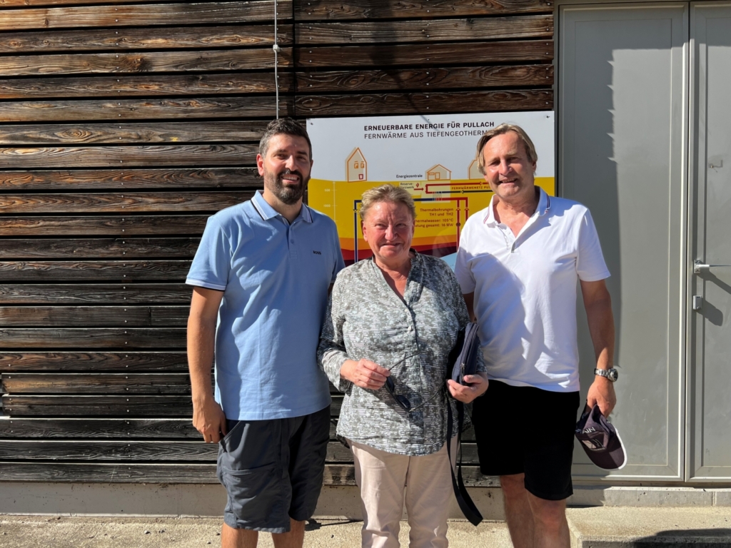 Florent Fatin (2. Foto li.), der Bürgermeister der Pullacher Partner-Gemeinde Pauillac, und seine Delegation ließen sich von Bürgermeisterin Susanna Tausendfreund (Mitte) und IEP-Geschäftsführer Helmut Mangold (re.) die Geothermie-Anlage zeigen. Frankreich heizt vorwiegend mit Strom. Die französische Delegation aus Pauillac war daher begeistert von dieser Art der Wärmeversorgung.