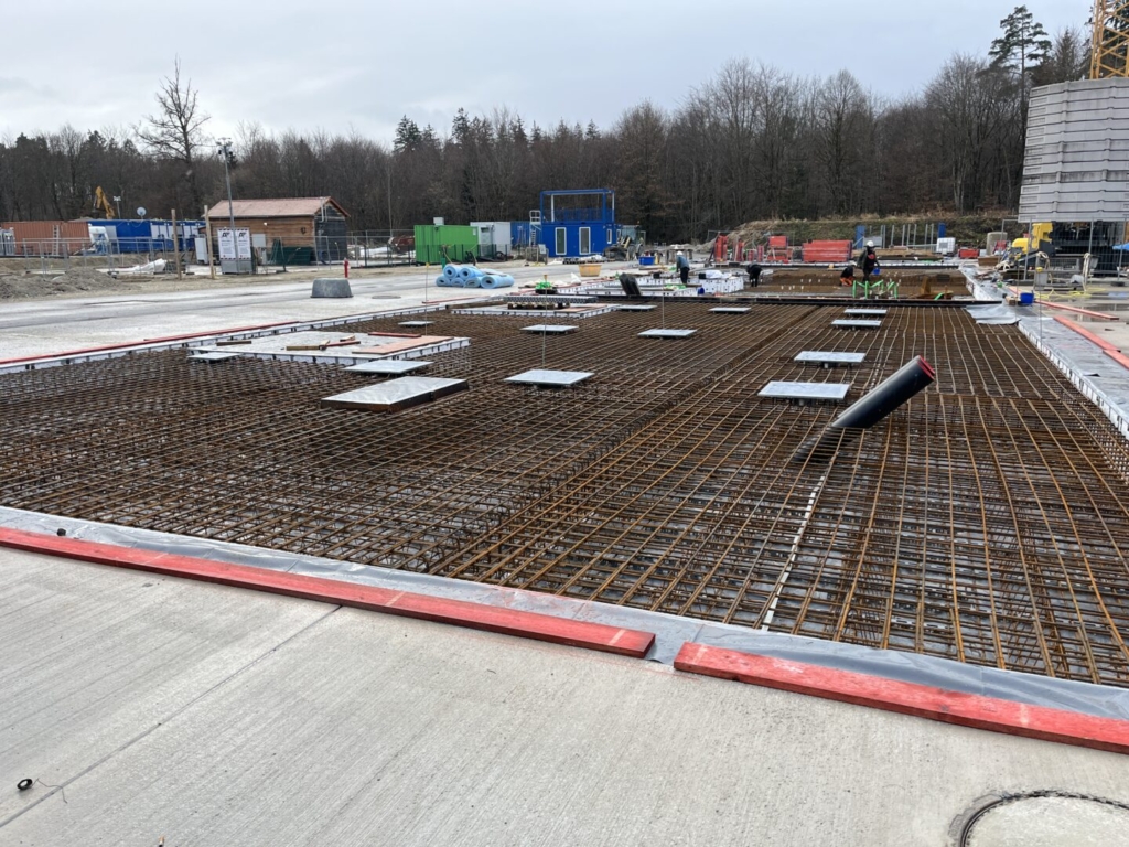 Am Bohrplatz Pullach Süd finden aktuell die restlichen Armierungsarbeiten statt. Der Wintereinbruch im vergangenen Jahr hat die Arbeiten gestoppt.