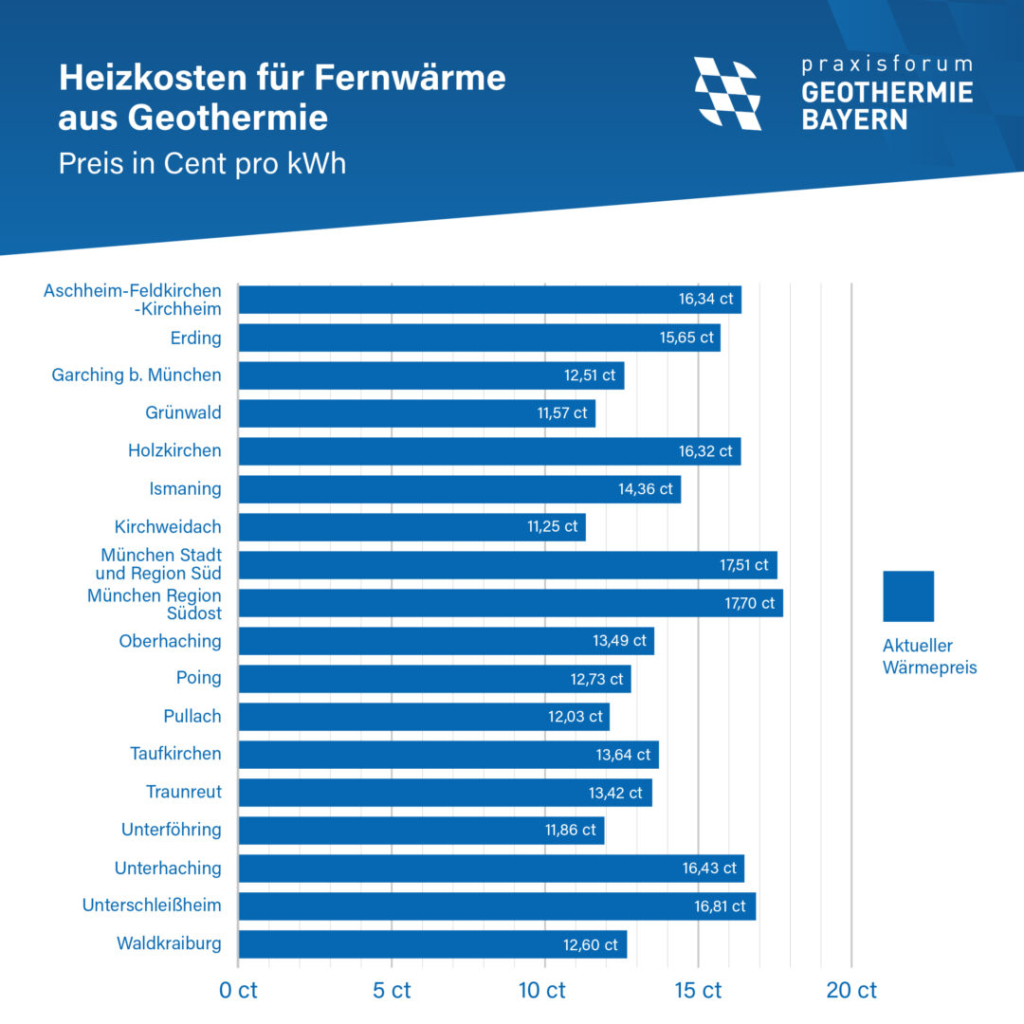 Mit 12,03 Cent inklusive Mehrwertsteuer pro Kilowattstunde gehört die Wärme aus Tiefengeothermie der Innovativen Energie für Pullach zu den günstigsten im Bayern-Vergleich. Das ist das Ergebnis einer aktuellen Studie der Agentur Enerchange in München.
